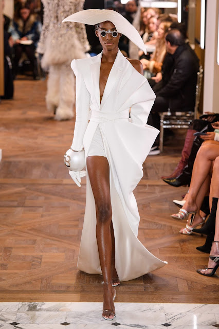 When it comes to couture styles its all about being extremely fierce and extra dramatic! There's no time to be basic or dull when it's your time to shine. The models on the runway at Balmain prove that this collection was going to be a head turner with well structure cuts, over-sized Balmin signature pearls and head pieces that were bold in platinum realness. While most of these styles are out of this world with reality. There is a dramatic appeal that makes you crave to drip in one of these garments in full strut mode. Did the designs pull of true couture, yes! I would totally rock these 5 dramatic looks below and own every minute of it on the catwalk.