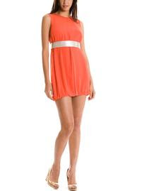 I am usually not a huge fan of the bubble style but this one is definitely on my list. I love the touch of the silver belt! I guess you’re wondering what color shoes can I wear with this? Okay the ladies in the office here at glitterbuzzstyle thinks silver would be a wise move. I personally agree but to me the silver belt is the pop color and adding silver shoes might hide that initial attraction! So I say keep the silver simple with studded earrings and a simple bracelet. And as for the shoes I would do a simple embellish thong sandal that has a touch of orange on them. You can also do clear sandals and not the ones that look like stripper shoes!!!